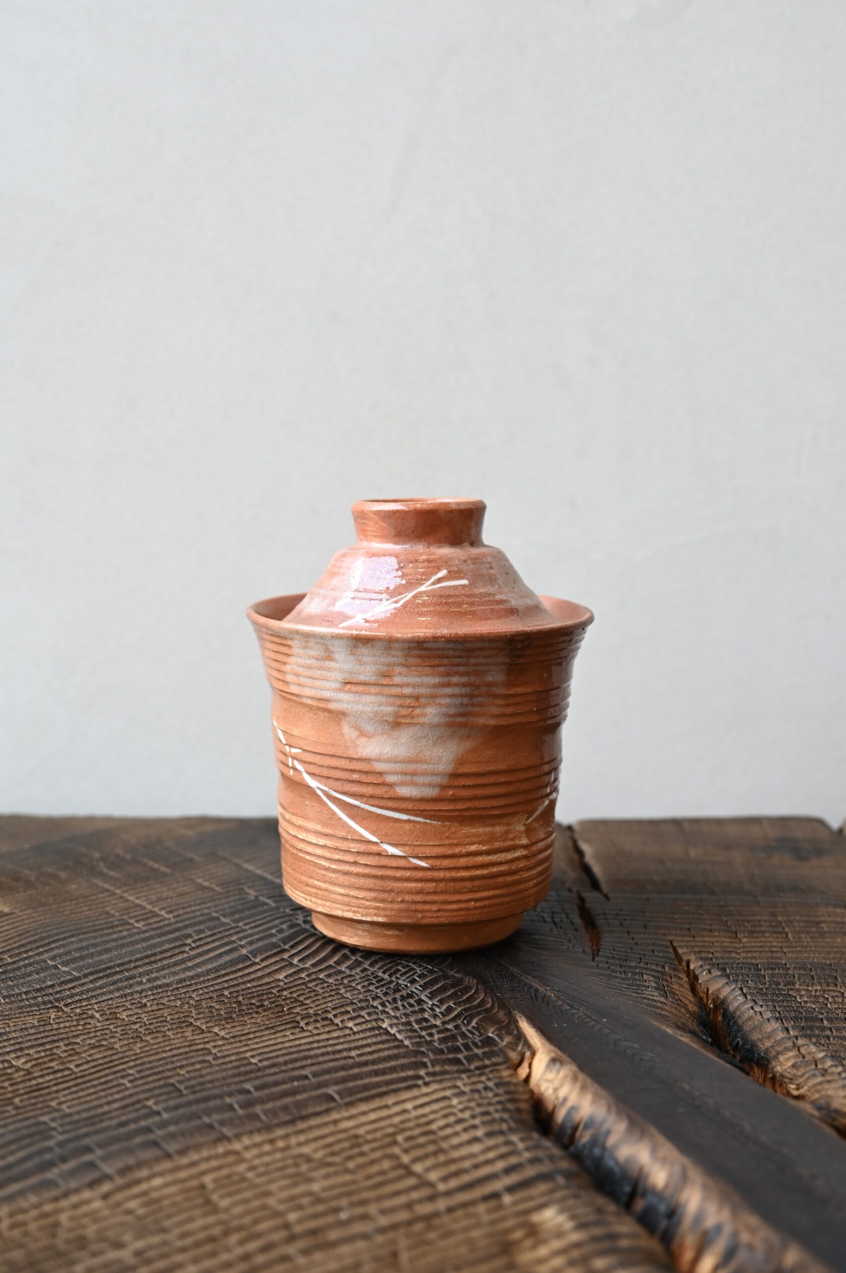 奈良県奈良市の焼物。ベージュのプリミティブな風合い。
