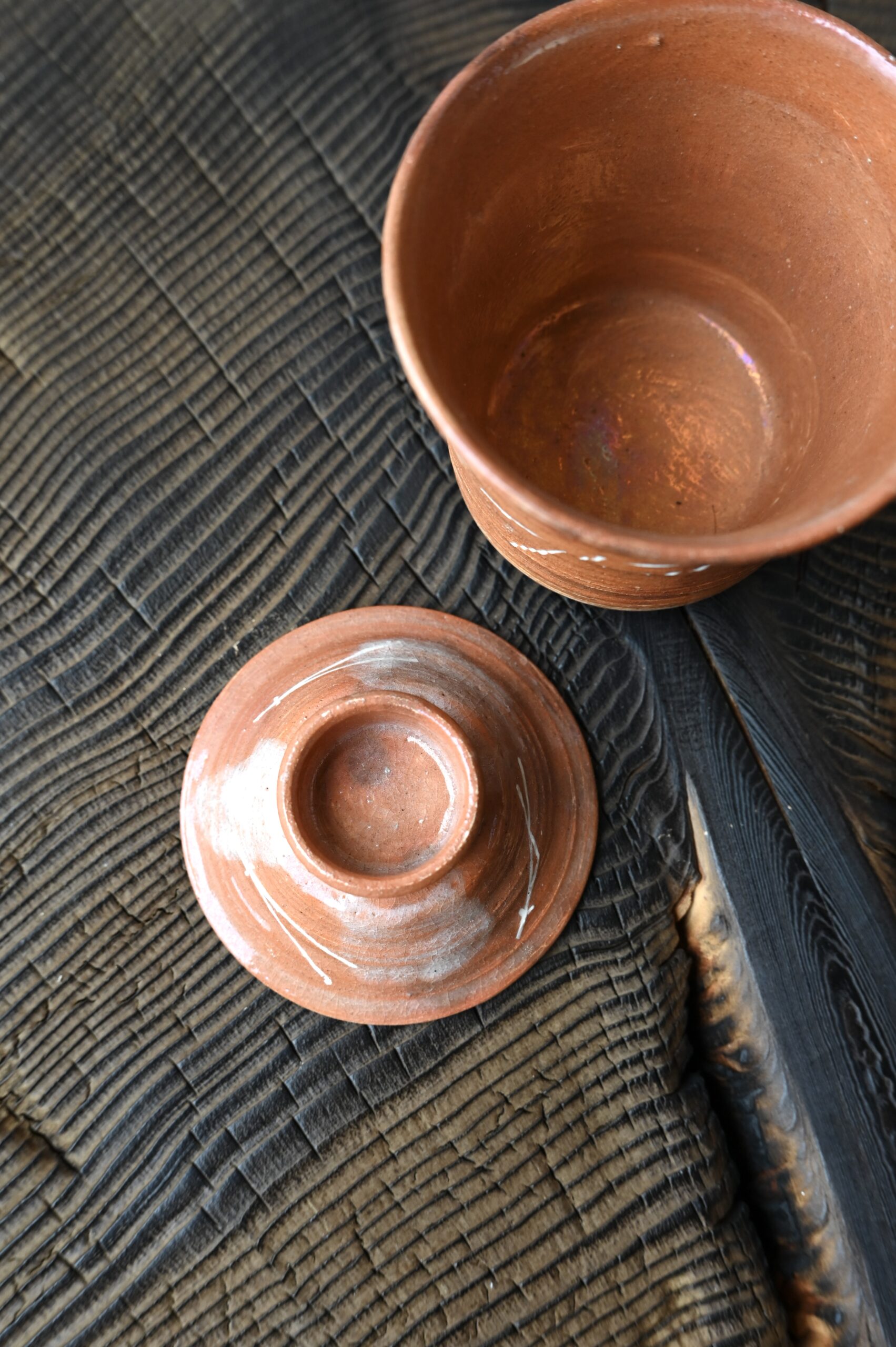 The glaze is made using deer bones from Miyama, and the slip is made with local Miyama clay.